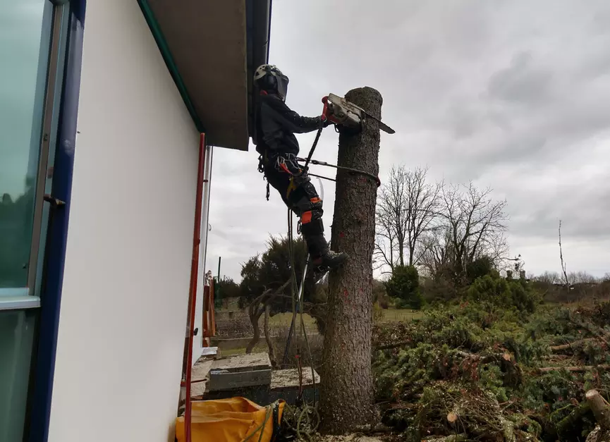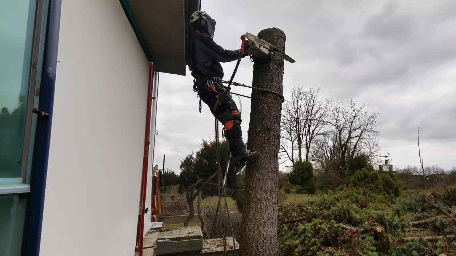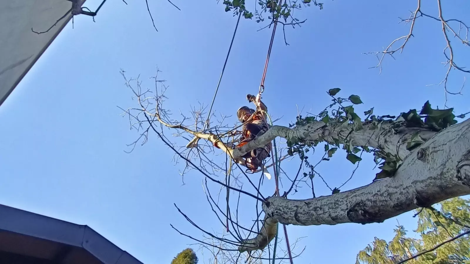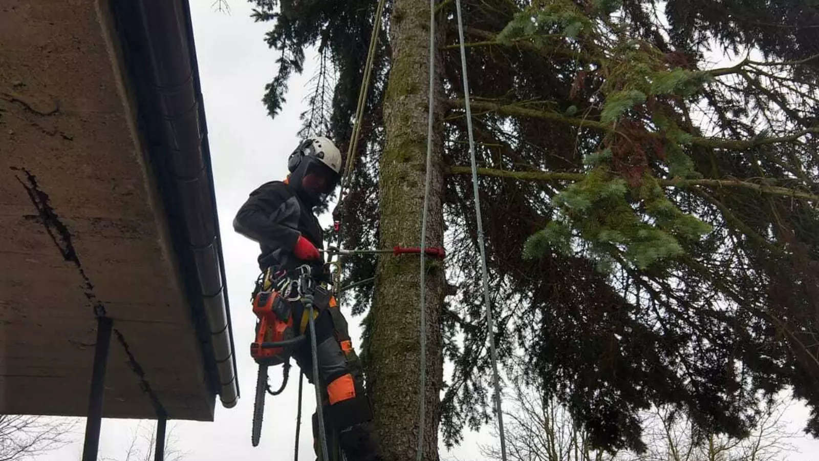 Prace wykonuję metodami linowymi, bez ciężkiego sprzętu, co pozwala działać bezpiecznie nawet w ciasnych ogrodach, przy budynkach i liniach energetycznych, minimalizując zniszczenia terenu.